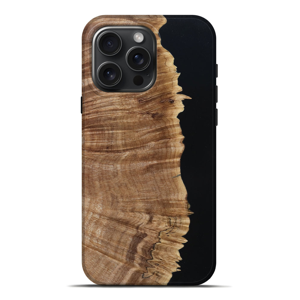 Our Live Edge cases are made from an amazing combination of stabilized wood burl and colored resin. Our stabilization process hardens the wood to protect against cracks and breaks. We do every step of the process at our shop in Northern Indiana. Perfectly fits the iPhone 16 Pro Max.