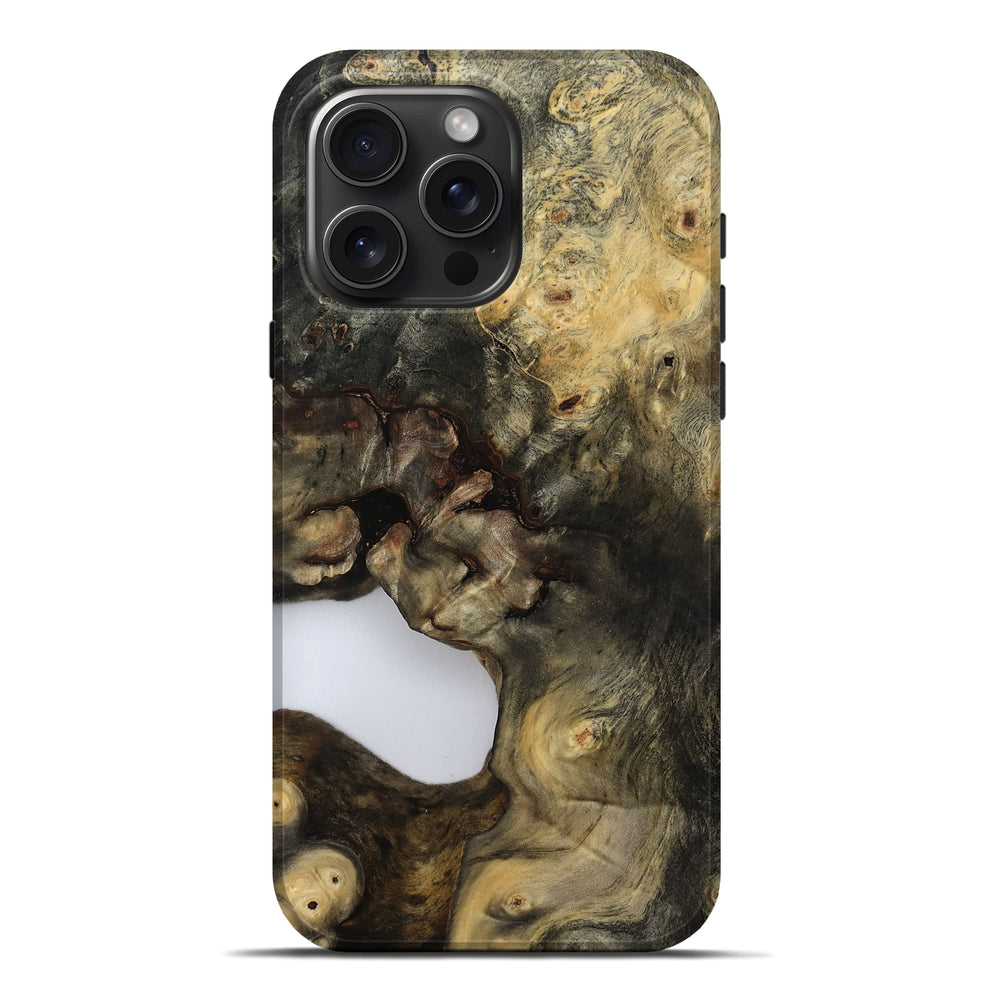 Our Live Edge cases are made from an amazing combination of stabilized wood burl and colored resin. Our stabilization process hardens the wood to protect against cracks and breaks. We do every step of the process at our shop in Northern Indiana. Perfectly fits the iPhone 16 Pro Max.
