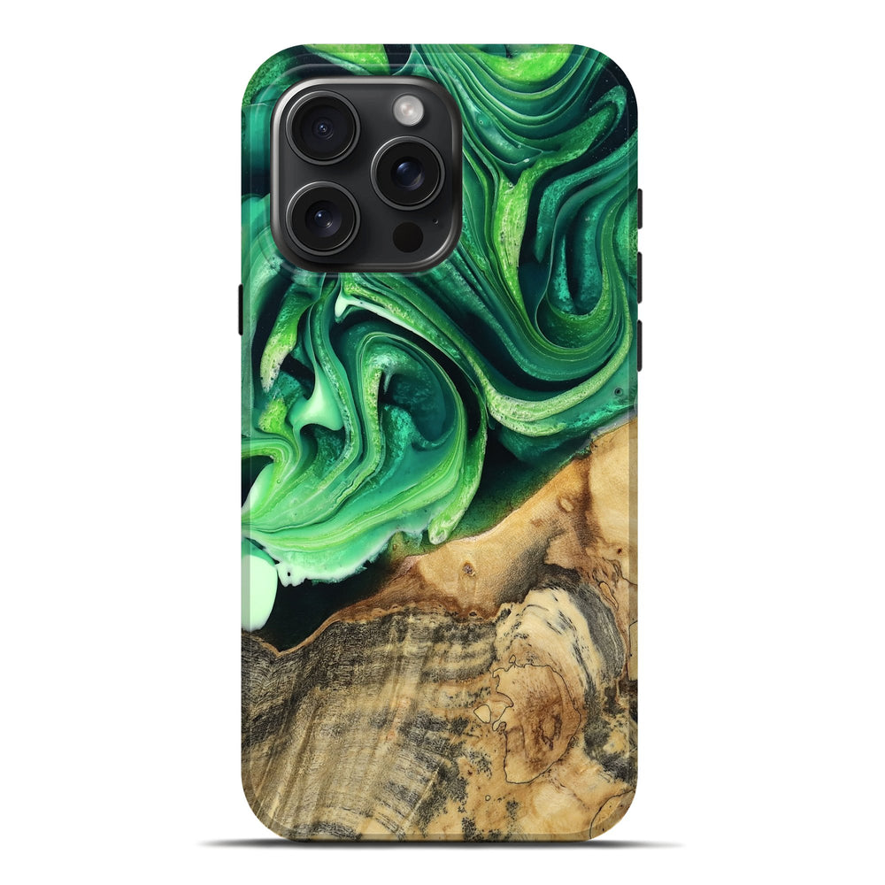 Our Live Edge cases are made from an amazing combination of stabilized wood burl and colored resin. Our stabilization process hardens the wood to protect against cracks and breaks. We do every step of the process at our shop in Northern Indiana. Perfectly fits the iPhone 16 Pro Max.