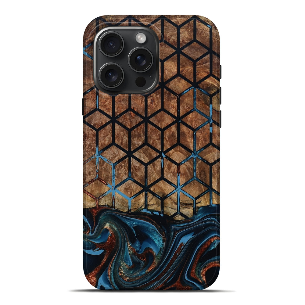 Our Live Edge cases are made from an amazing combination of stabilized wood burl and colored resin. Our stabilization process hardens the wood to protect against cracks and breaks. We do every step of the process at our shop in Northern Indiana. Perfectly fits the iPhone 16 Pro Max.