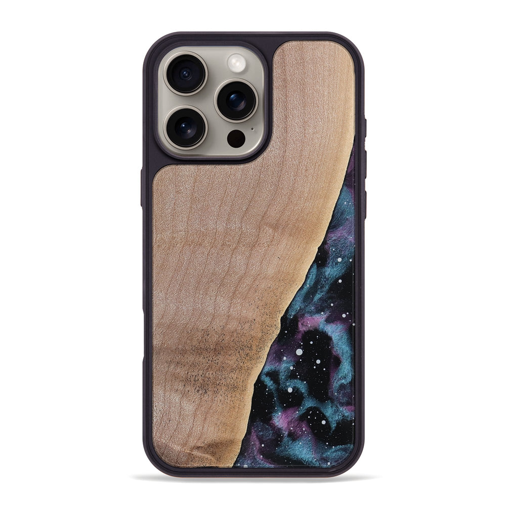 Aspyn has a smooth, warm surface that showcases the natural grain of the Maple wood. The light tones of the wood beautifully contrast with the dark, cosmic background, creating a calming effect.