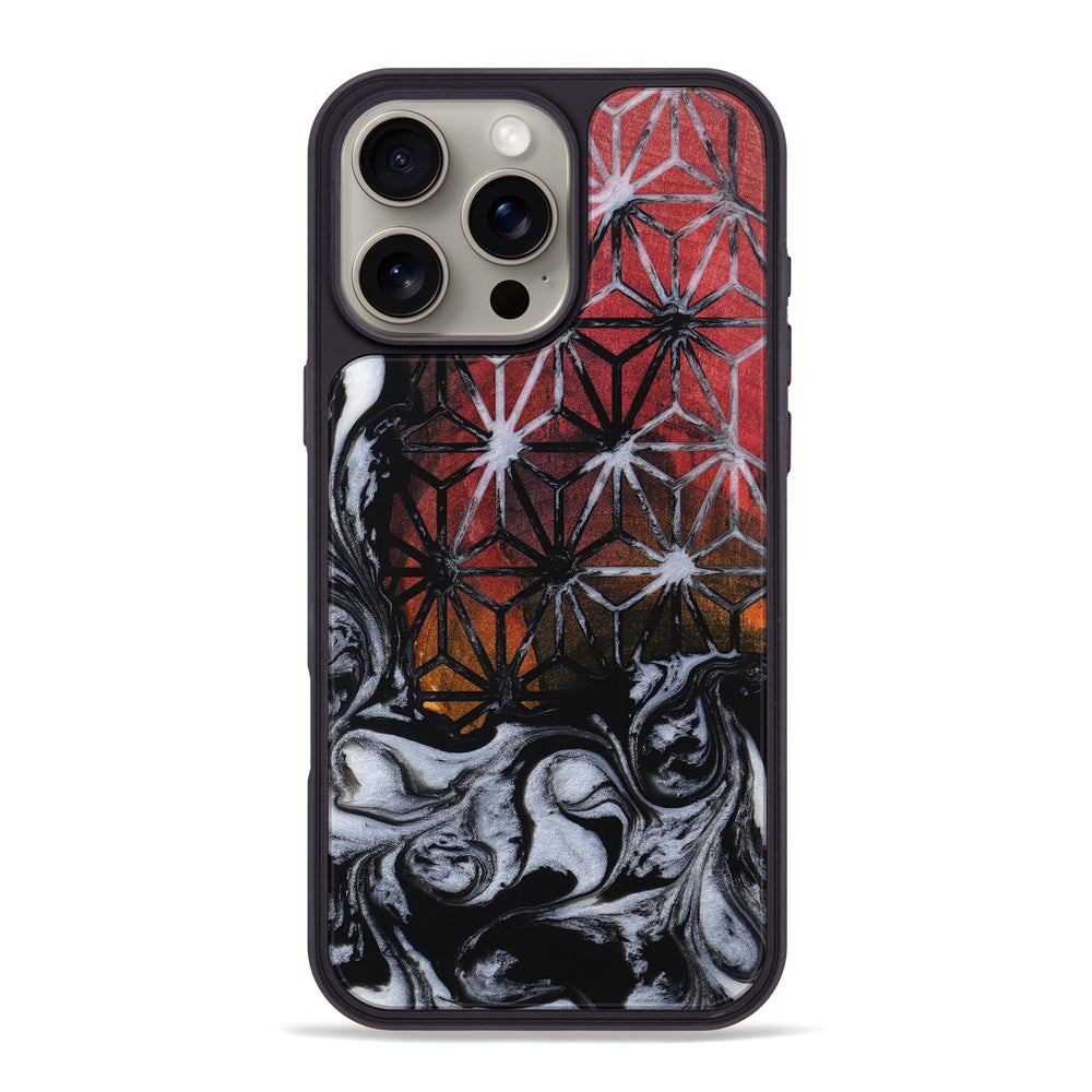 Emmet features a beautiful blend of red and black tones with intricate geometric patterns throughout. The swirling designs create a dynamic visual effect, making it both striking and unique.