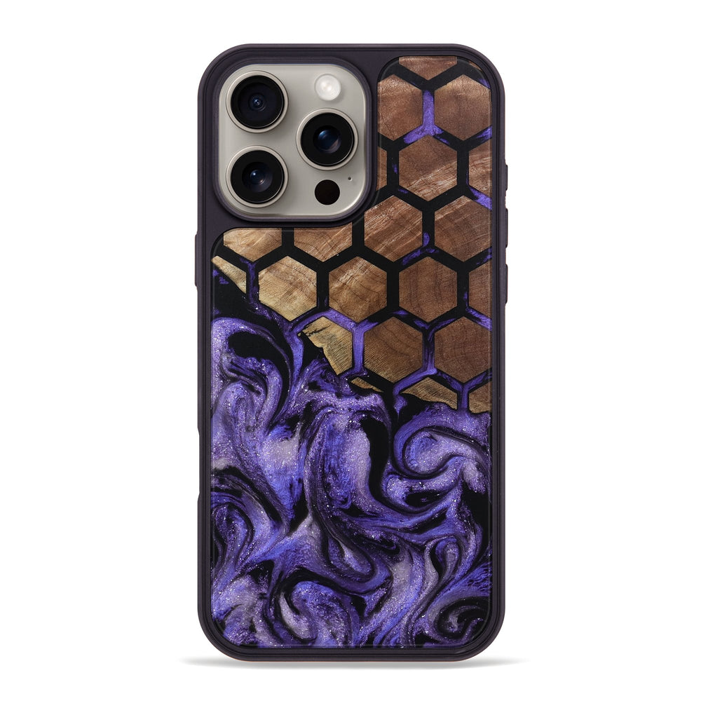 Milena has a warm, natural look with its light maple wood and a striking hexagonal pattern. Its smooth surface is complemented by rich swirls of purple, creating a unique blend of texture and color.