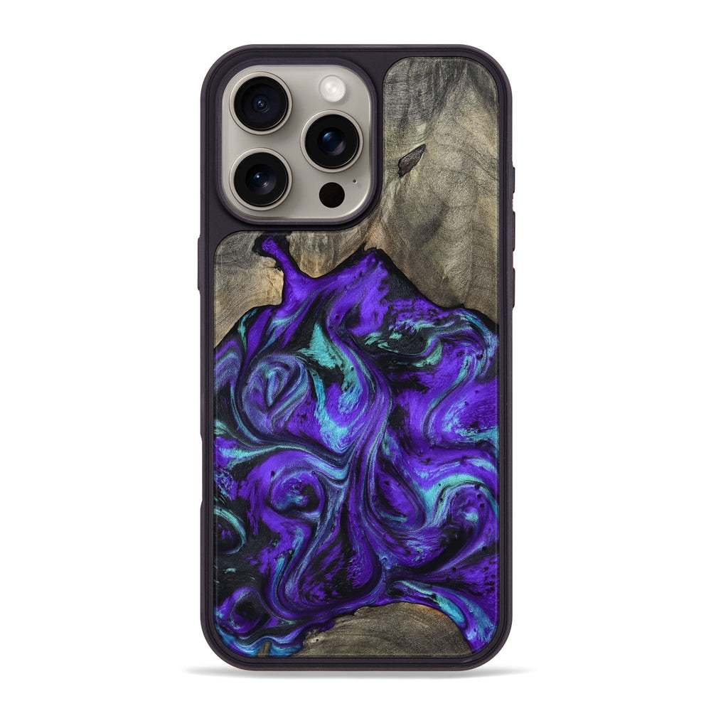 Wesley has a beautiful blend of deep purple and bright blue swirls. The wood's natural grain creates a lovely contrast against the bold colors.