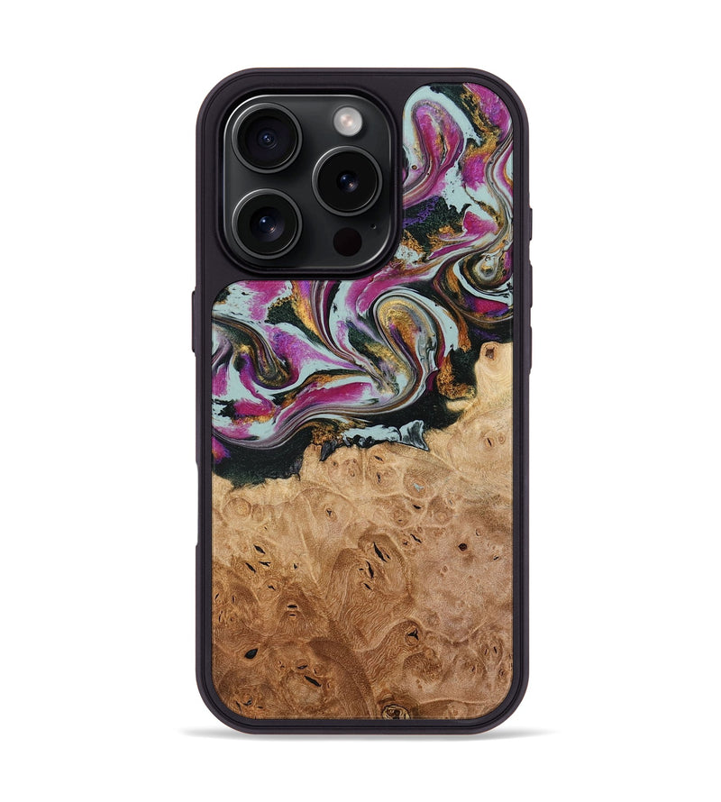 Our iPhone 16 Pro Wood Phone cases are unique and protective. We make each phone case from a unique combination of real wood burl and colorful resin. Designed to perfectly fit and protect your iPhone 16 Pro (Change Phone).