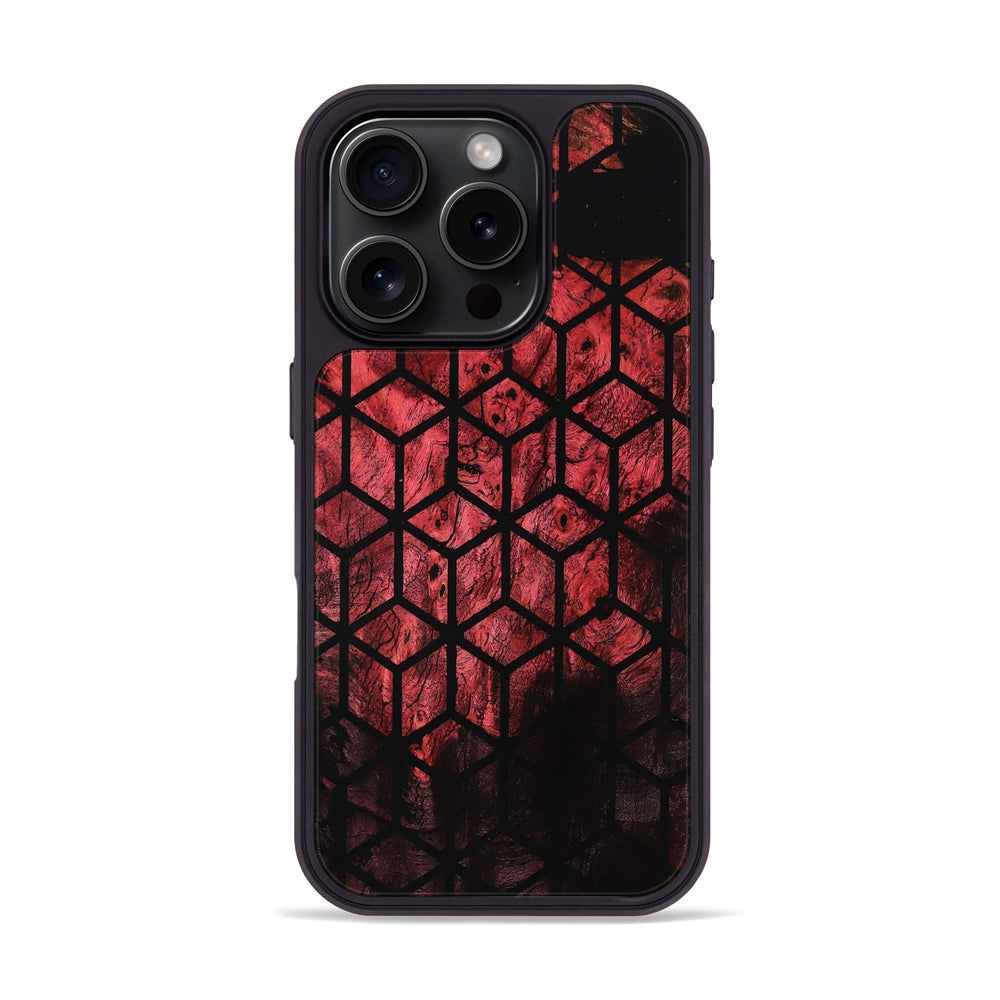 Ian has a striking pattern of hexagons filled with rich shades of red and black. The dyed wood creates an eye-catching design that draws the viewer in.