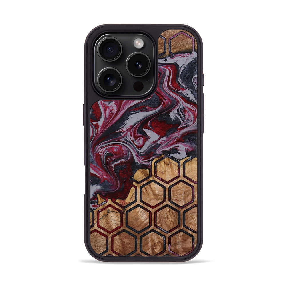 Ransom features beautiful swirls of deep reds and blacks that dance across the maple wood. It also has a striking honeycomb pattern, adding a unique touch to its warm wood surface.