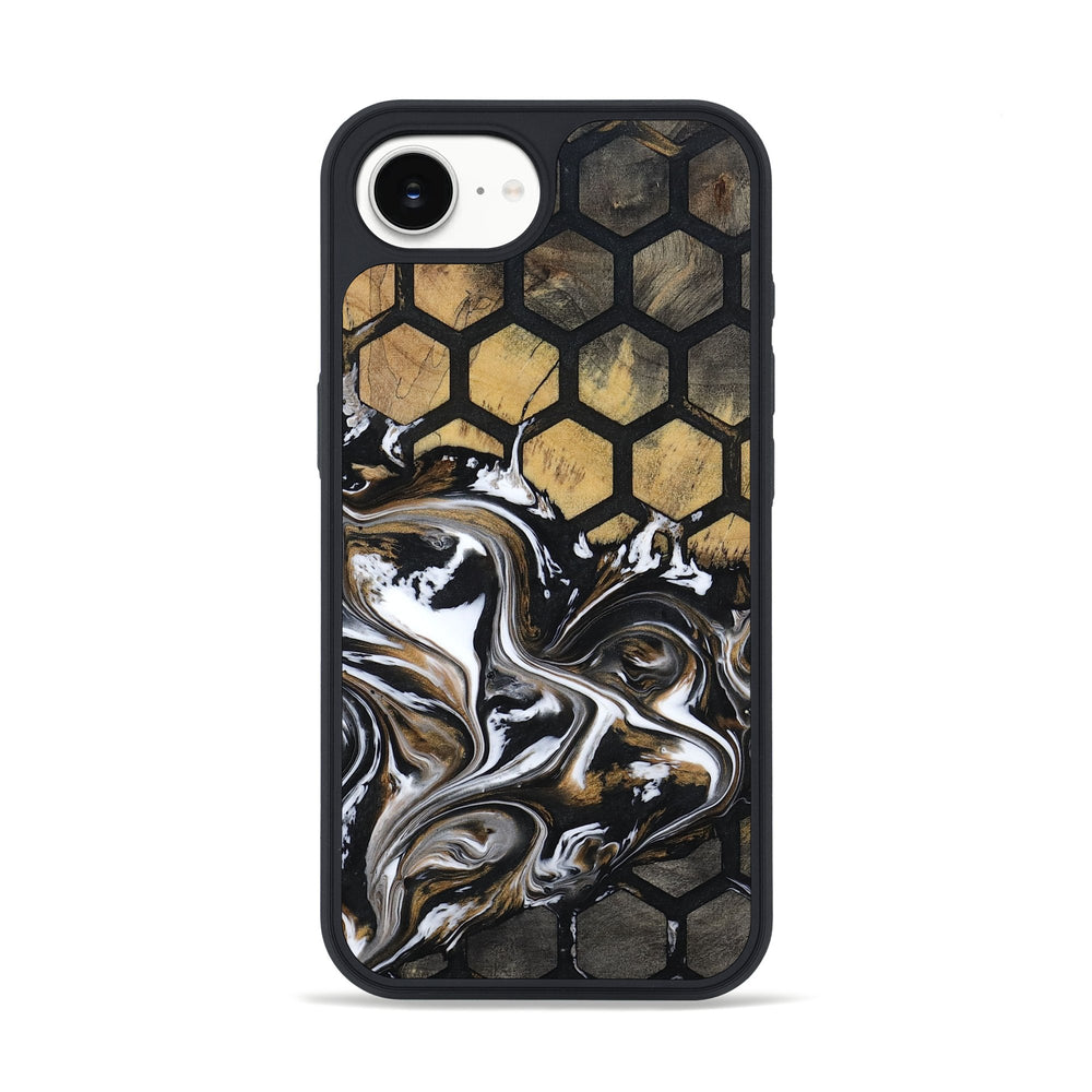 Wylie has a striking pattern of honeycomb shapes, adding a unique texture. The warm tones of the wood contrast beautifully with swirling black and white accents.
