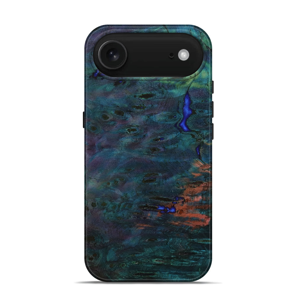 Our Live Edge cases are made from an amazing combination of stabilized wood burl and colored resin. Our stabilization process hardens the wood to protect against cracks and breaks. We do every step of the process at our shop in Northern Indiana. Perfectly fits the iPhone 17 Air.