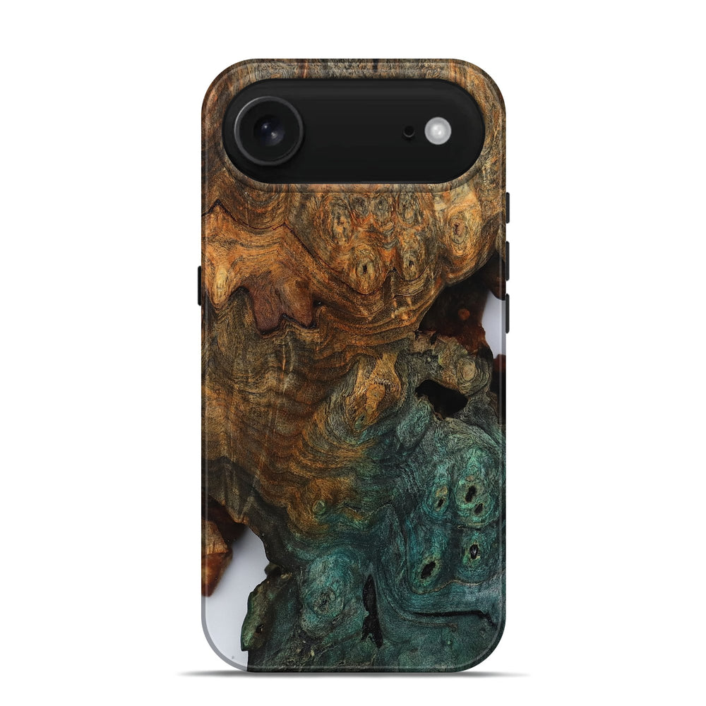 Our Live Edge cases are made from an amazing combination of stabilized wood burl and colored resin. Our stabilization process hardens the wood to protect against cracks and breaks. We do every step of the process at our shop in Northern Indiana. Perfectly fits the iPhone 17 Air.