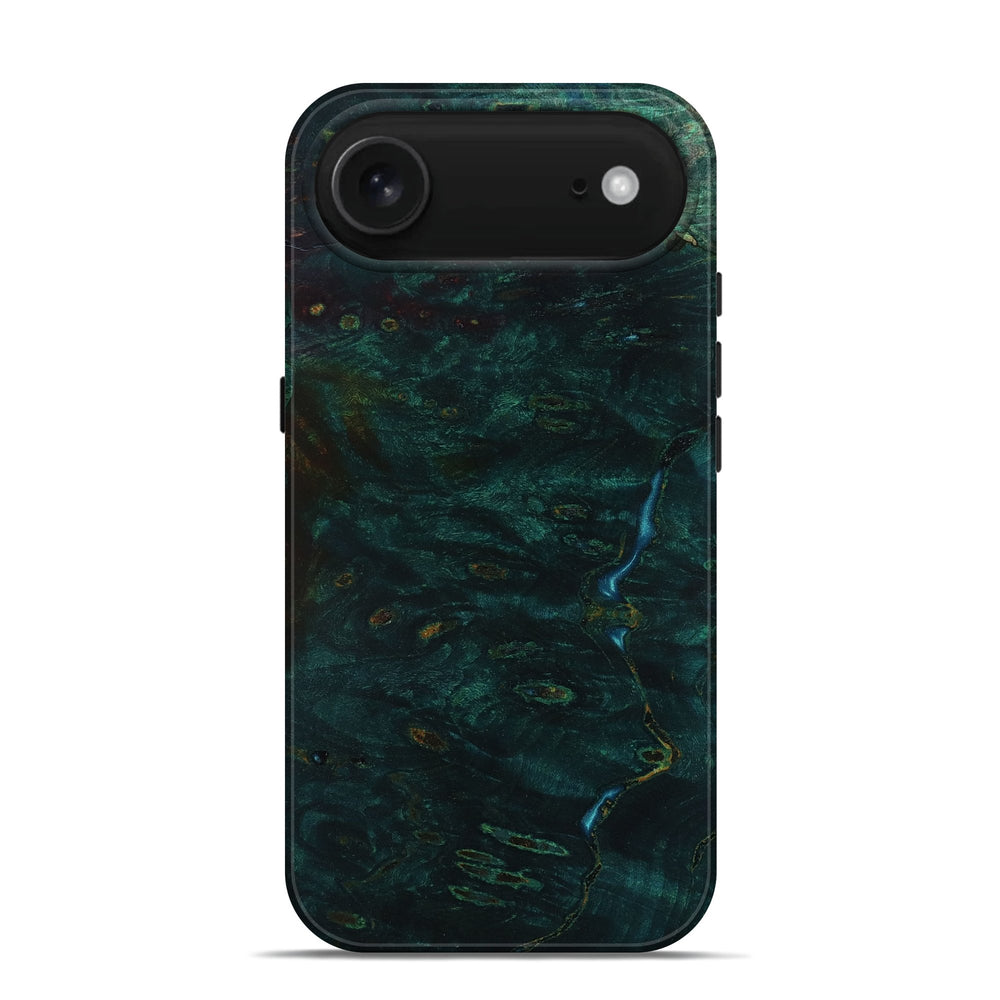 Our Live Edge cases are made from an amazing combination of stabilized wood burl and colored resin. Our stabilization process hardens the wood to protect against cracks and breaks. We do every step of the process at our shop in Northern Indiana. Perfectly fits the iPhone 17 Air.