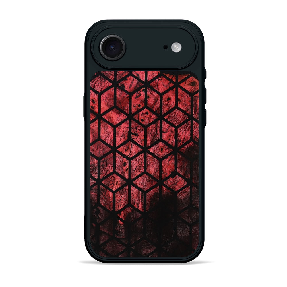 Ian has a striking pattern of hexagons filled with rich shades of red and black. The dyed wood creates an eye-catching design that draws the viewer in.