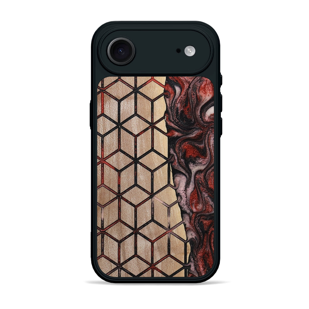 Cari has a beautiful, light Maple wood surface with a neat honeycomb pattern. The contrast with the swirling red and black gives it a striking and unique look.