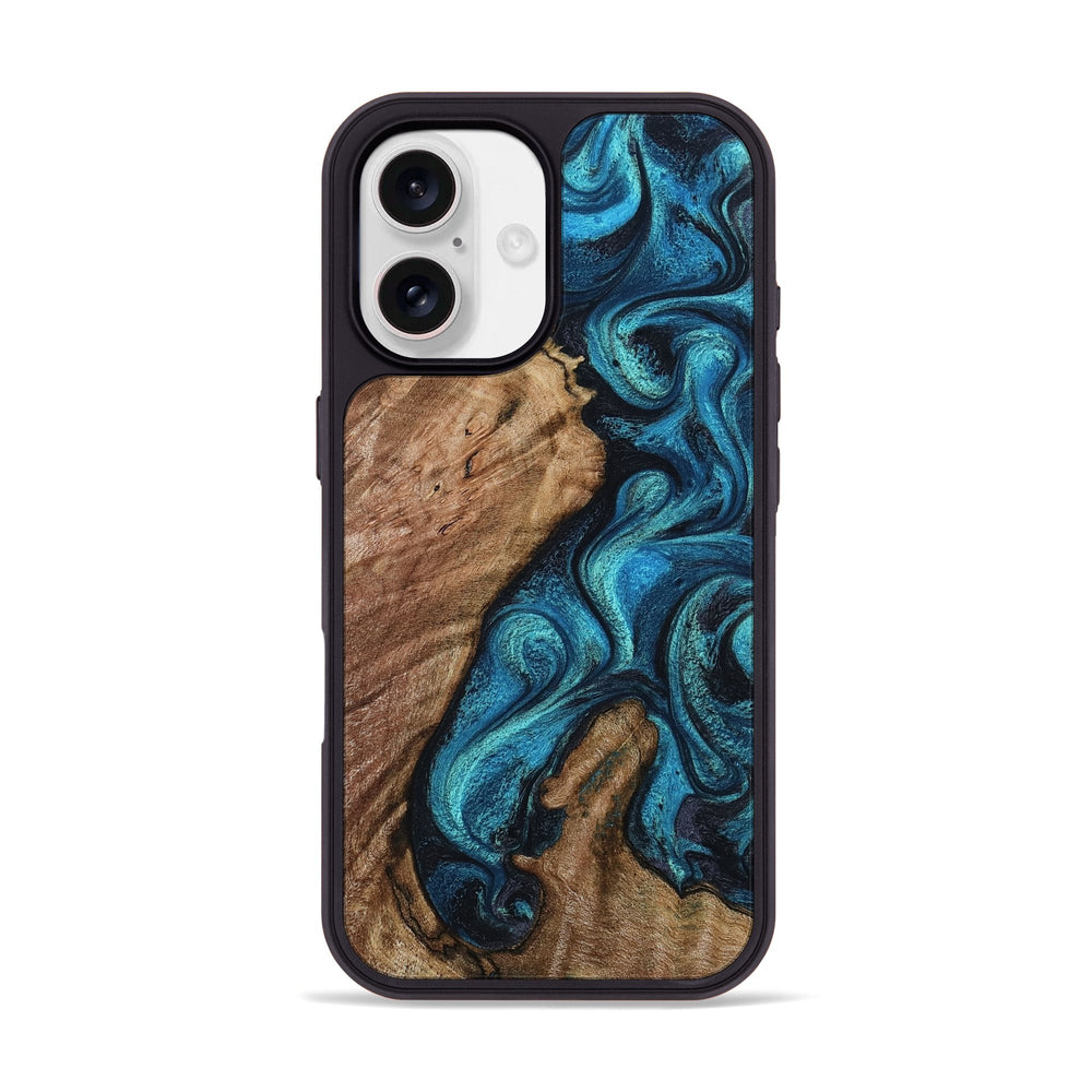 Landyn has beautiful patterns of rich brown Maple wood, showcasing its natural grain. Swirls of blue flow across the surface, creating a calming and harmonious look.