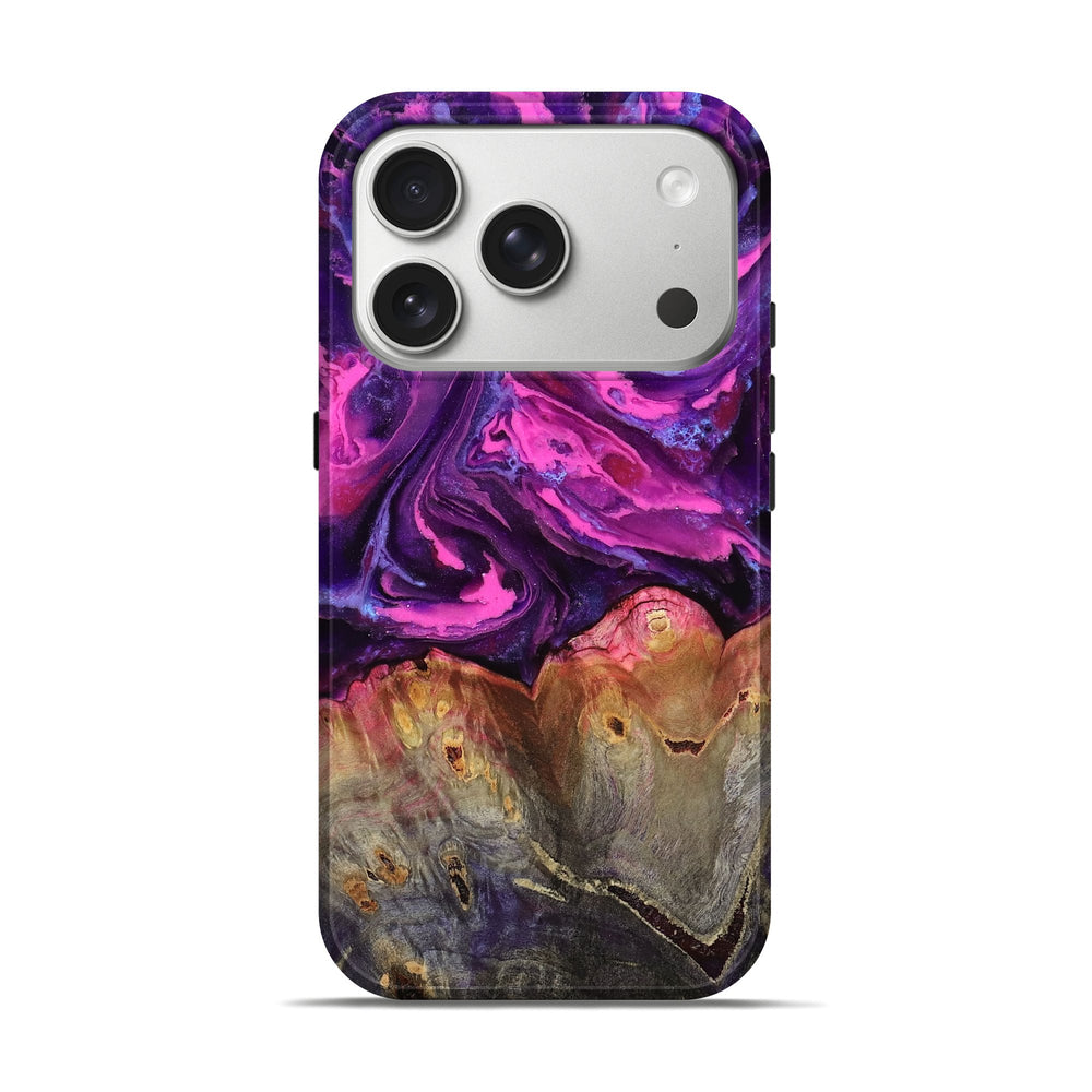 Our Live Edge cases are made from an amazing combination of stabilized wood burl and colored resin. Our stabilization process hardens the wood to protect against cracks and breaks. We do every step of the process at our shop in Northern Indiana. Perfectly fits the iPhone 17 Pro.
