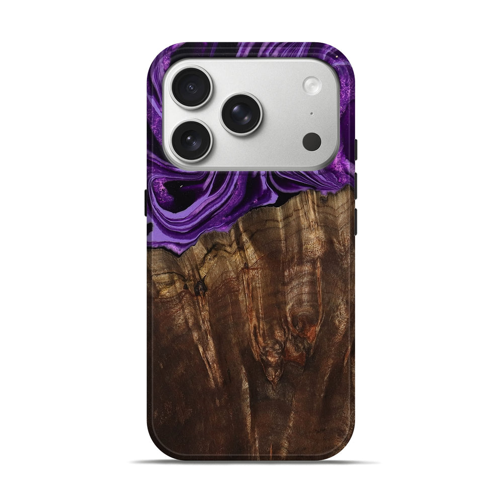 Our Live Edge cases are made from an amazing combination of stabilized wood burl and colored resin. Our stabilization process hardens the wood to protect against cracks and breaks. We do every step of the process at our shop in Northern Indiana. Perfectly fits the iPhone 17 Pro.