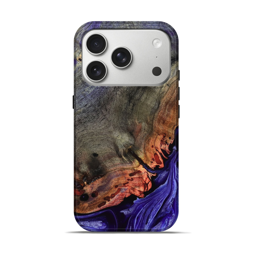 Our Live Edge cases are made from an amazing combination of stabilized wood burl and colored resin. Our stabilization process hardens the wood to protect against cracks and breaks. We do every step of the process at our shop in Northern Indiana. Perfectly fits the iPhone 17 Pro.