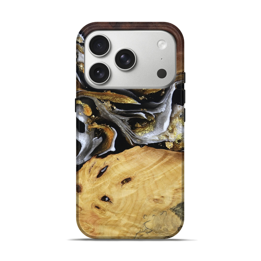 Our Live Edge cases are made from an amazing combination of stabilized wood burl and colored resin. Our stabilization process hardens the wood to protect against cracks and breaks. We do every step of the process at our shop in Northern Indiana. Perfectly fits the iPhone 17 Pro.