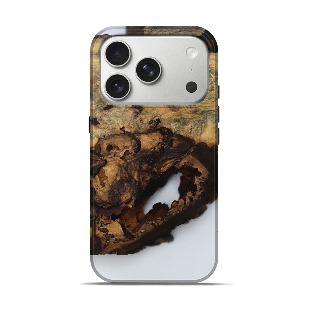 Our Live Edge cases are made from an amazing combination of stabilized wood burl and colored resin. Our stabilization process hardens the wood to protect against cracks and breaks. We do every step of the process at our shop in Northern Indiana. Perfectly fits the iPhone 17 Pro.