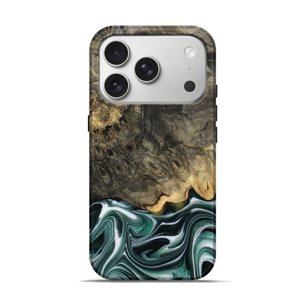 Our Live Edge cases are made from an amazing combination of stabilized wood burl and colored resin. Our stabilization process hardens the wood to protect against cracks and breaks. We do every step of the process at our shop in Northern Indiana. Perfectly fits the iPhone 17 Pro.