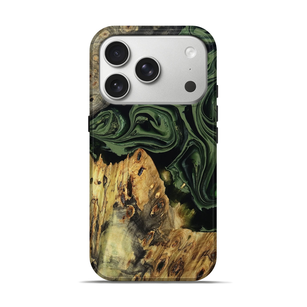 Our Live Edge cases are made from an amazing combination of stabilized wood burl and colored resin. Our stabilization process hardens the wood to protect against cracks and breaks. We do every step of the process at our shop in Northern Indiana. Perfectly fits the iPhone 17 Pro.