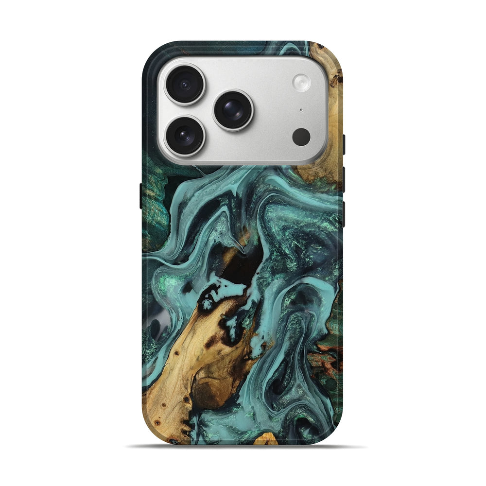Our Live Edge cases are made from an amazing combination of stabilized wood burl and colored resin. Our stabilization process hardens the wood to protect against cracks and breaks. We do every step of the process at our shop in Northern Indiana. Perfectly fits the iPhone 17 Pro.