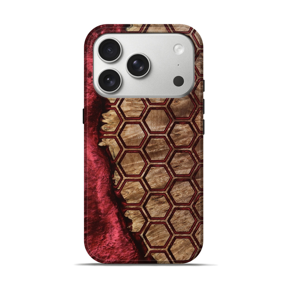 Our Live Edge cases are made from an amazing combination of stabilized wood burl and colored resin. Our stabilization process hardens the wood to protect against cracks and breaks. We do every step of the process at our shop in Northern Indiana. Perfectly fits the iPhone 17 Pro.