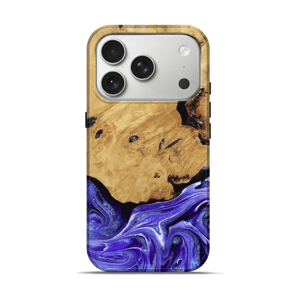 Our Live Edge cases are made from an amazing combination of stabilized wood burl and colored resin. Our stabilization process hardens the wood to protect against cracks and breaks. We do every step of the process at our shop in Northern Indiana. Perfectly fits the iPhone 17 Pro.