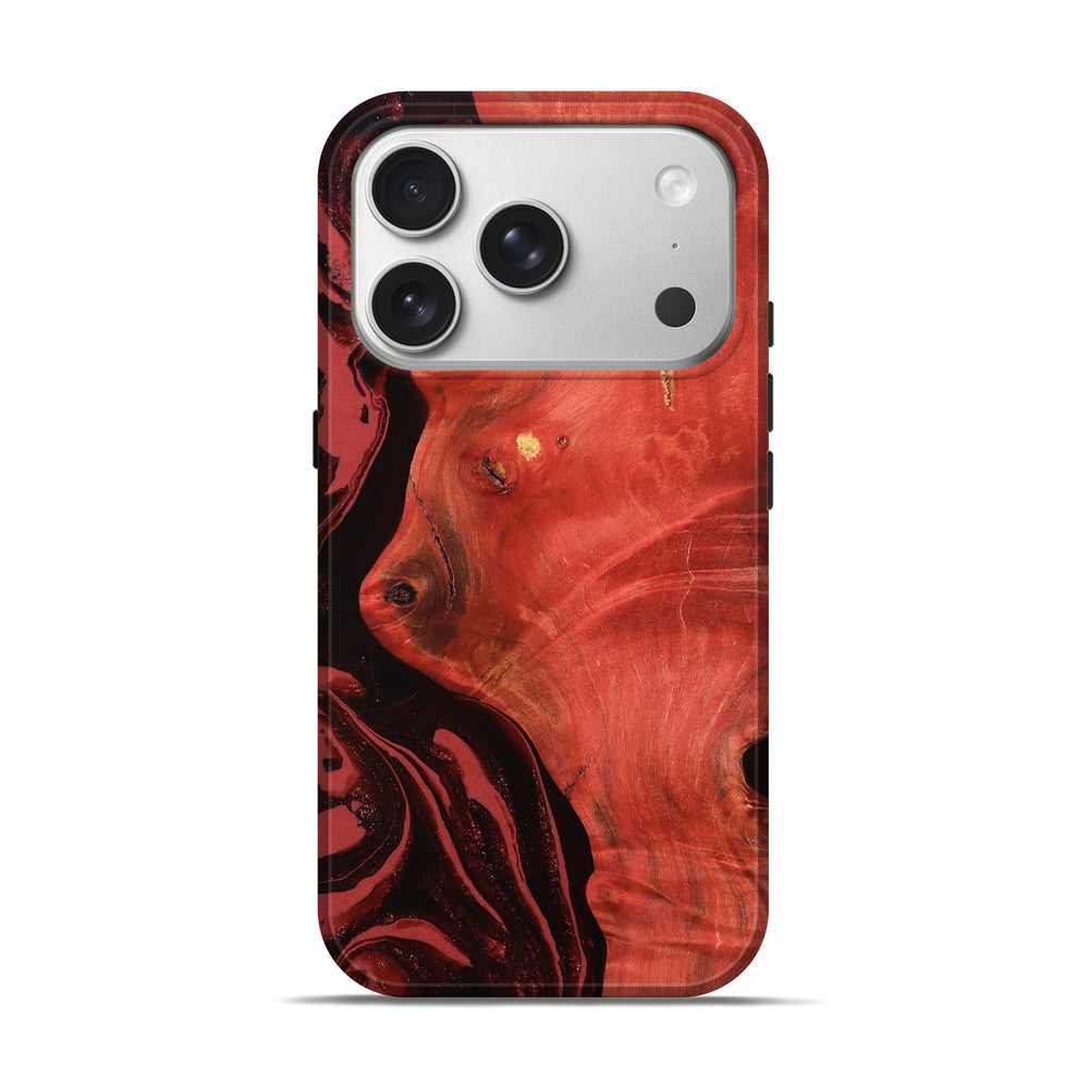 Our Live Edge cases are made from an amazing combination of stabilized wood burl and colored resin. Our stabilization process hardens the wood to protect against cracks and breaks. We do every step of the process at our shop in Northern Indiana. Perfectly fits the iPhone 17 Pro.