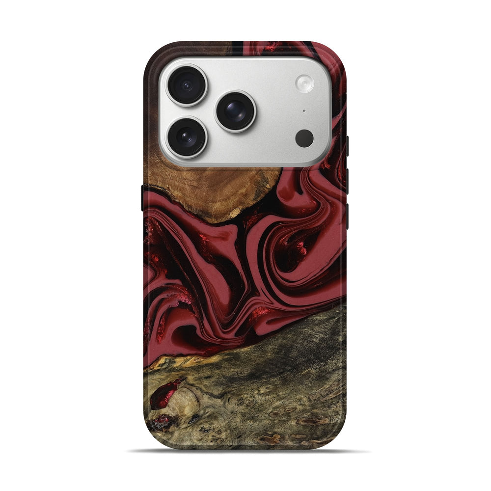 Our Live Edge cases are made from an amazing combination of stabilized wood burl and colored resin. Our stabilization process hardens the wood to protect against cracks and breaks. We do every step of the process at our shop in Northern Indiana. Perfectly fits the iPhone 17 Pro.