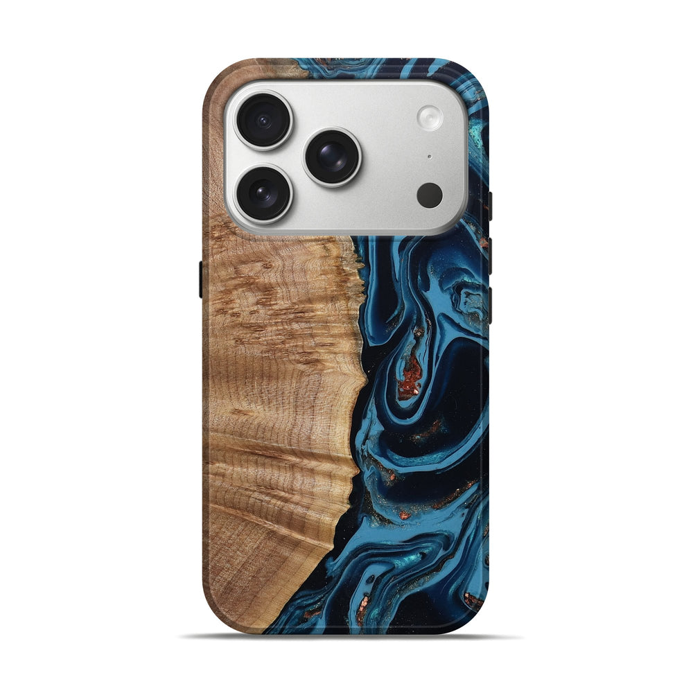 Our Live Edge cases are made from an amazing combination of stabilized wood burl and colored resin. Our stabilization process hardens the wood to protect against cracks and breaks. We do every step of the process at our shop in Northern Indiana. Perfectly fits the iPhone 17 Pro.