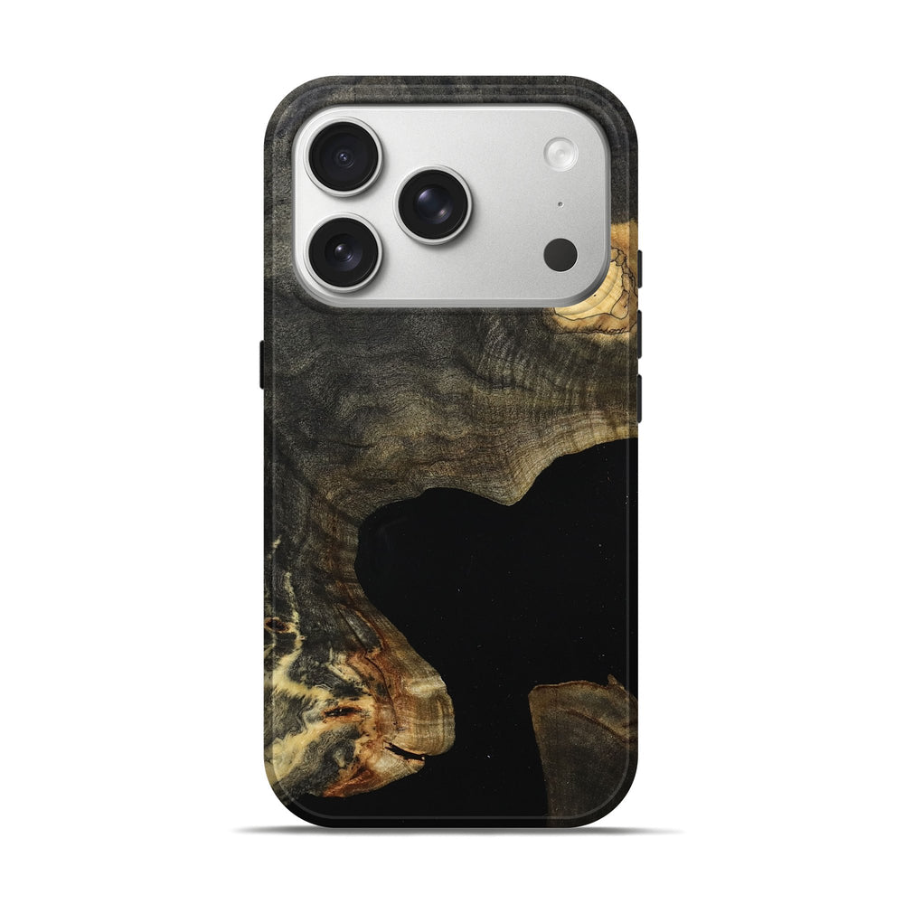 Our Live Edge cases are made from an amazing combination of stabilized wood burl and colored resin. Our stabilization process hardens the wood to protect against cracks and breaks. We do every step of the process at our shop in Northern Indiana. Perfectly fits the iPhone 17 Pro.