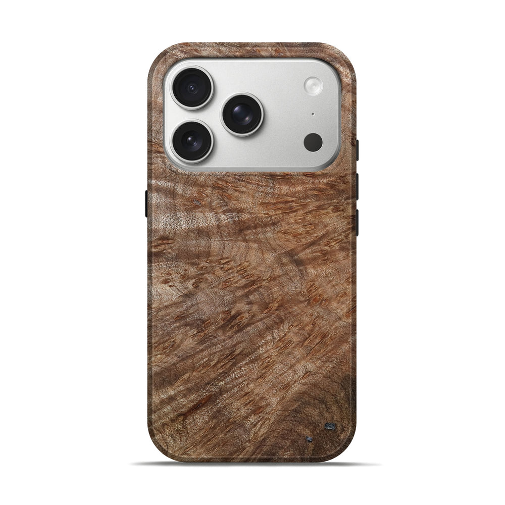 Our Live Edge cases are made from an amazing combination of stabilized wood burl and colored resin. Our stabilization process hardens the wood to protect against cracks and breaks. We do every step of the process at our shop in Northern Indiana. Perfectly fits the iPhone 17 Pro.