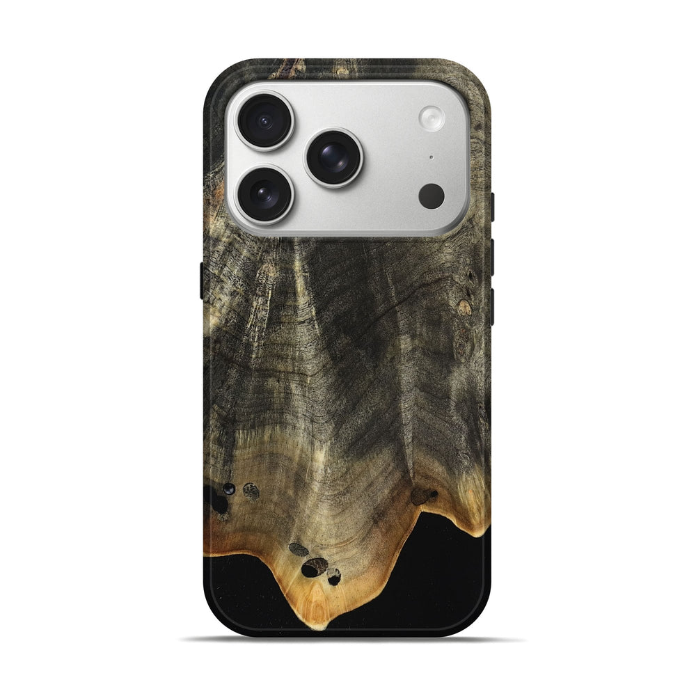 Our Live Edge cases are made from an amazing combination of stabilized wood burl and colored resin. Our stabilization process hardens the wood to protect against cracks and breaks. We do every step of the process at our shop in Northern Indiana. Perfectly fits the iPhone 17 Pro.