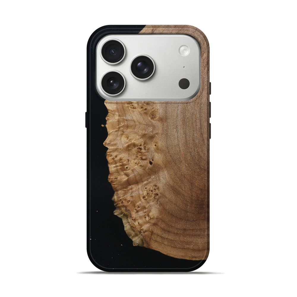 Our Live Edge cases are made from an amazing combination of stabilized wood burl and colored resin. Our stabilization process hardens the wood to protect against cracks and breaks. We do every step of the process at our shop in Northern Indiana. Perfectly fits the iPhone 17 Pro.