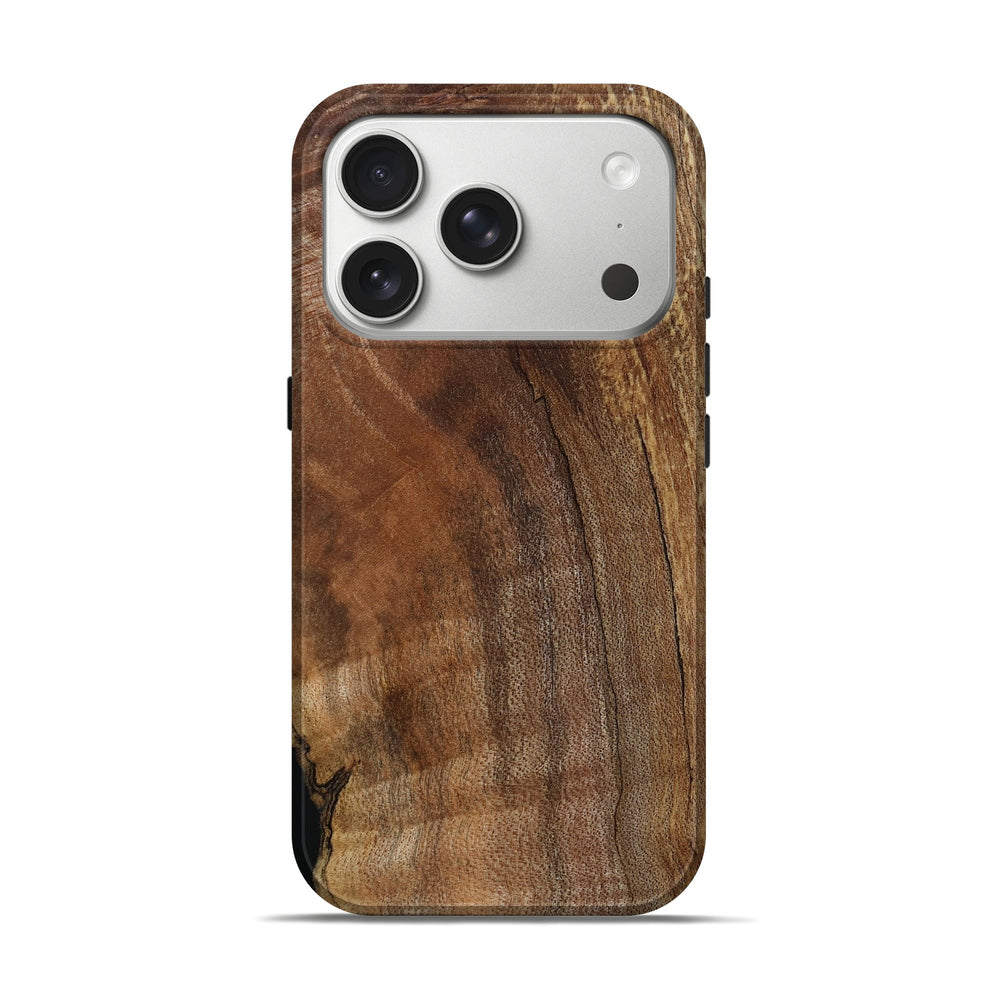Our Live Edge cases are made from an amazing combination of stabilized wood burl and colored resin. Our stabilization process hardens the wood to protect against cracks and breaks. We do every step of the process at our shop in Northern Indiana. Perfectly fits the iPhone 17 Pro.
