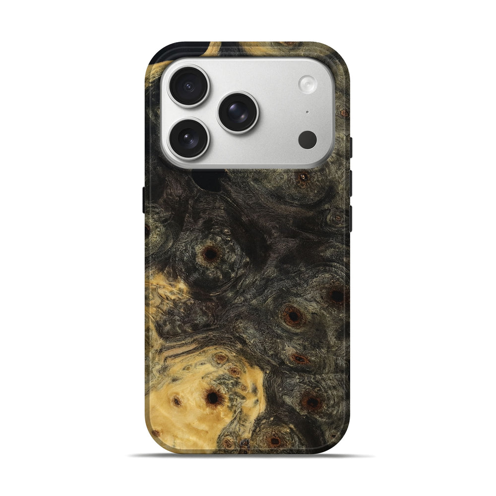 Our Live Edge cases are made from an amazing combination of stabilized wood burl and colored resin. Our stabilization process hardens the wood to protect against cracks and breaks. We do every step of the process at our shop in Northern Indiana. Perfectly fits the iPhone 17 Pro.