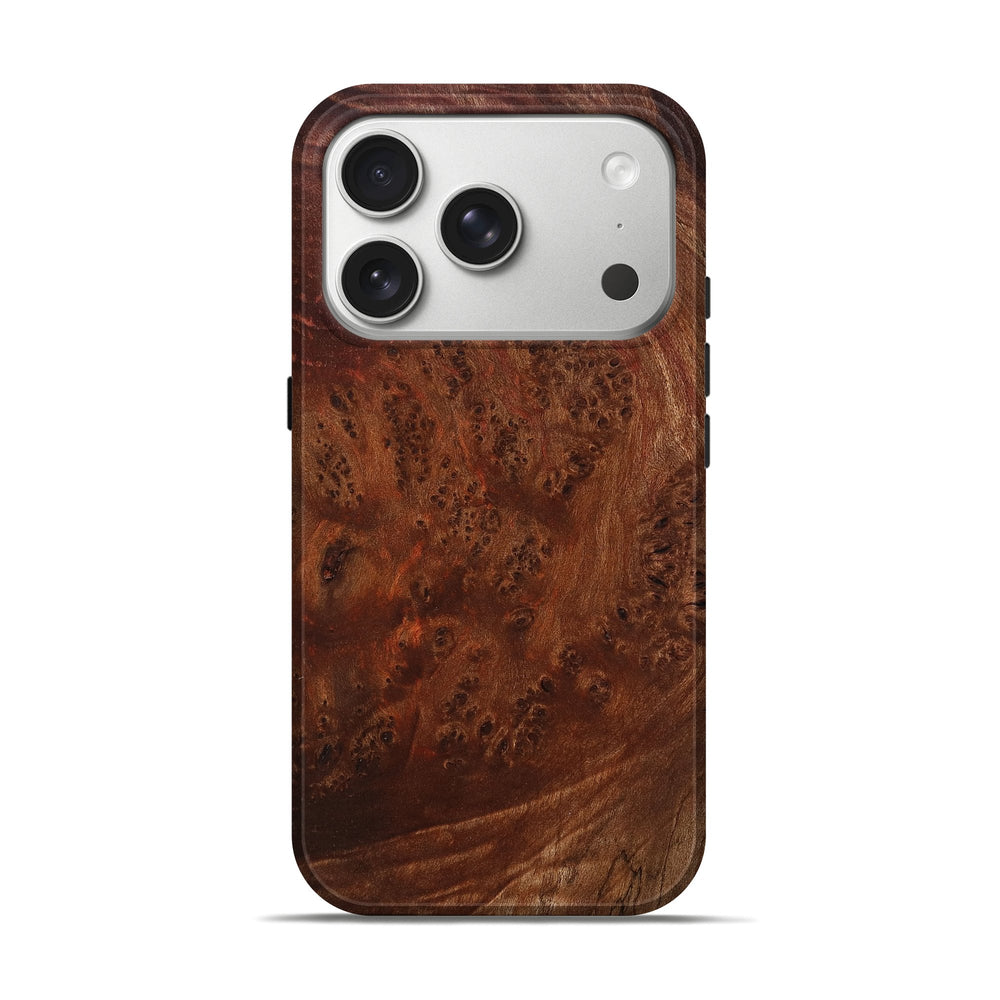 Our Live Edge cases are made from an amazing combination of stabilized wood burl and colored resin. Our stabilization process hardens the wood to protect against cracks and breaks. We do every step of the process at our shop in Northern Indiana. Perfectly fits the iPhone 17 Pro.