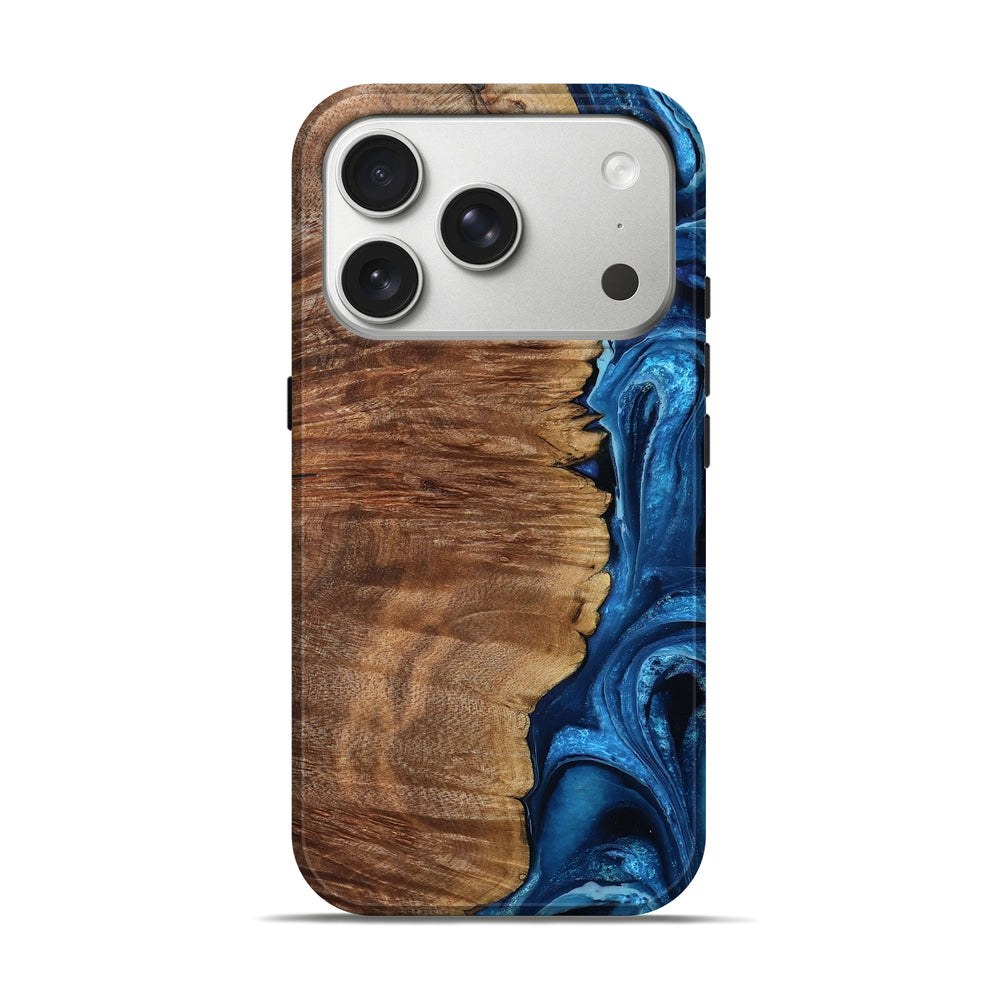 Our Live Edge cases are made from an amazing combination of stabilized wood burl and colored resin. Our stabilization process hardens the wood to protect against cracks and breaks. We do every step of the process at our shop in Northern Indiana. Perfectly fits the iPhone 17 Pro.