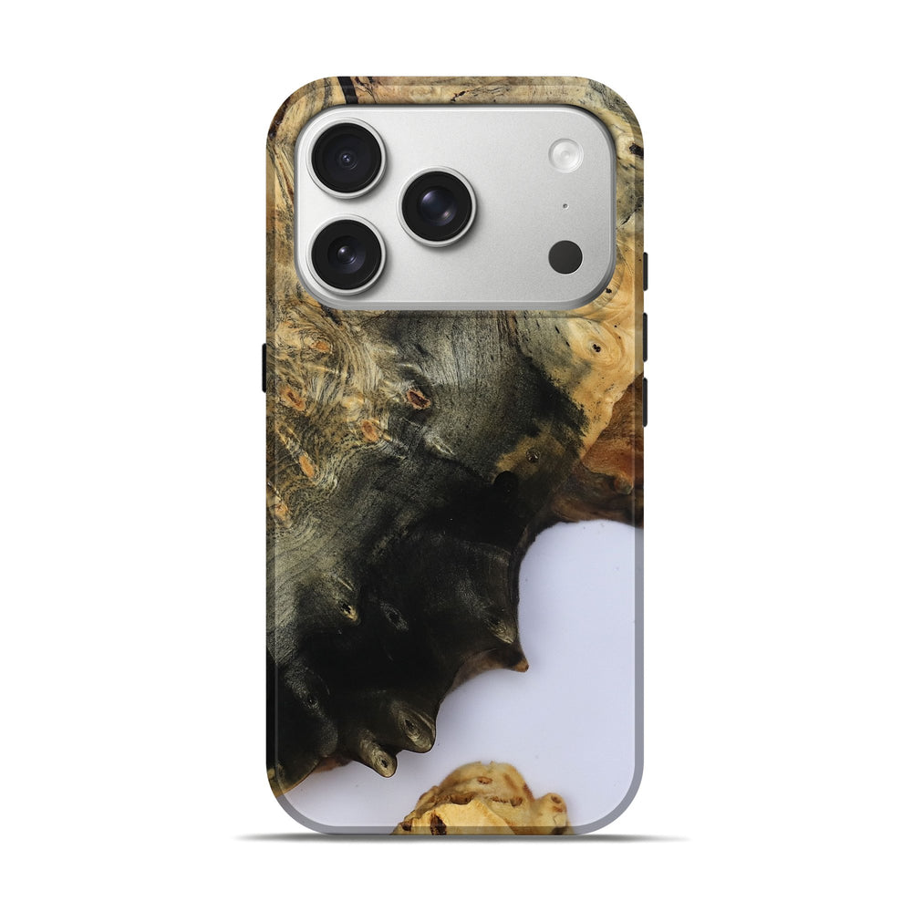 Our Live Edge cases are made from an amazing combination of stabilized wood burl and colored resin. Our stabilization process hardens the wood to protect against cracks and breaks. We do every step of the process at our shop in Northern Indiana. Perfectly fits the iPhone 17 Pro.