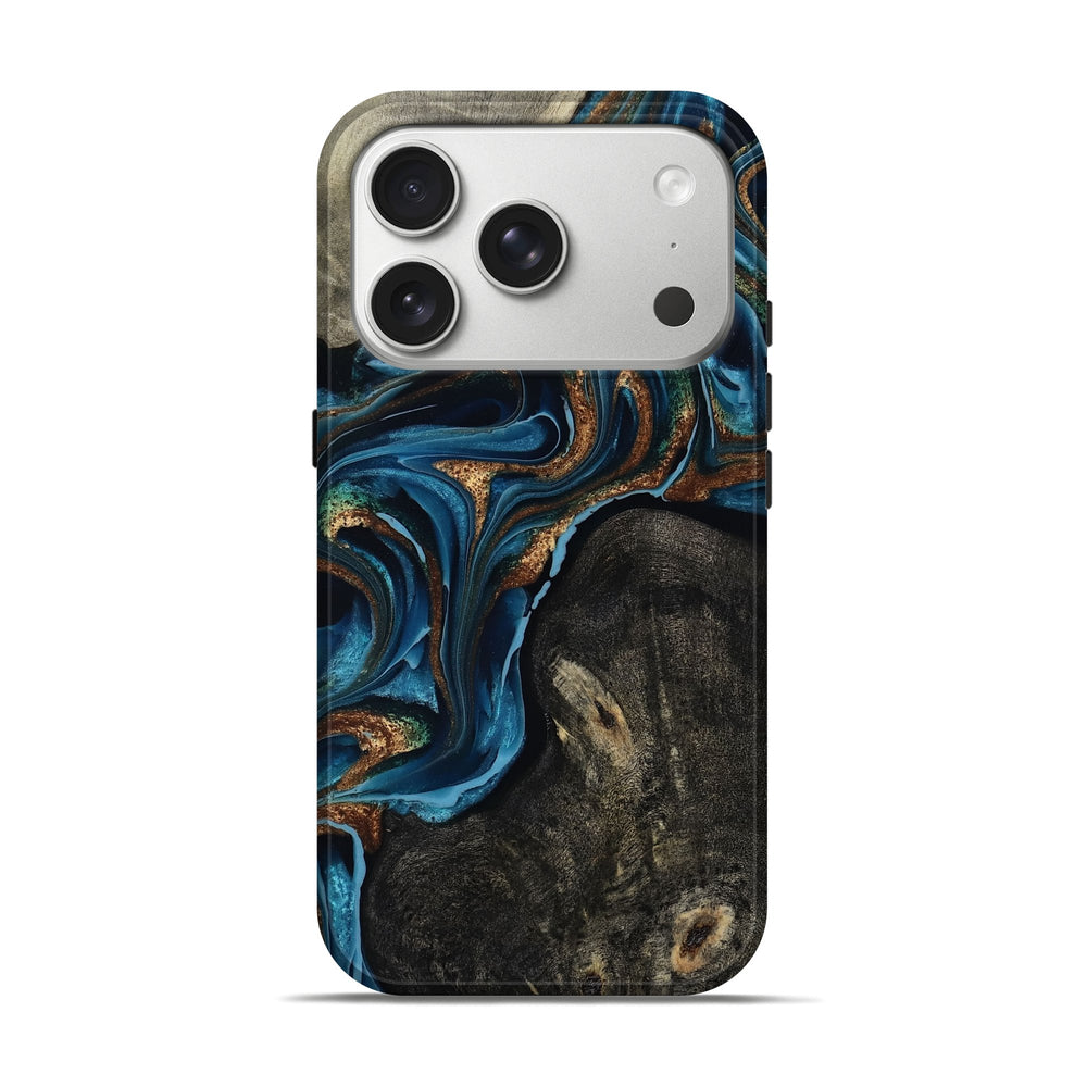 Our Live Edge cases are made from an amazing combination of stabilized wood burl and colored resin. Our stabilization process hardens the wood to protect against cracks and breaks. We do every step of the process at our shop in Northern Indiana. Perfectly fits the iPhone 17 Pro.