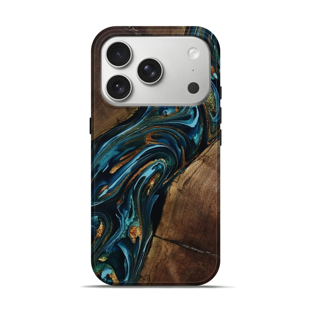 Our Live Edge cases are made from an amazing combination of stabilized wood burl and colored resin. Our stabilization process hardens the wood to protect against cracks and breaks. We do every step of the process at our shop in Northern Indiana. Perfectly fits the iPhone 17 Pro.