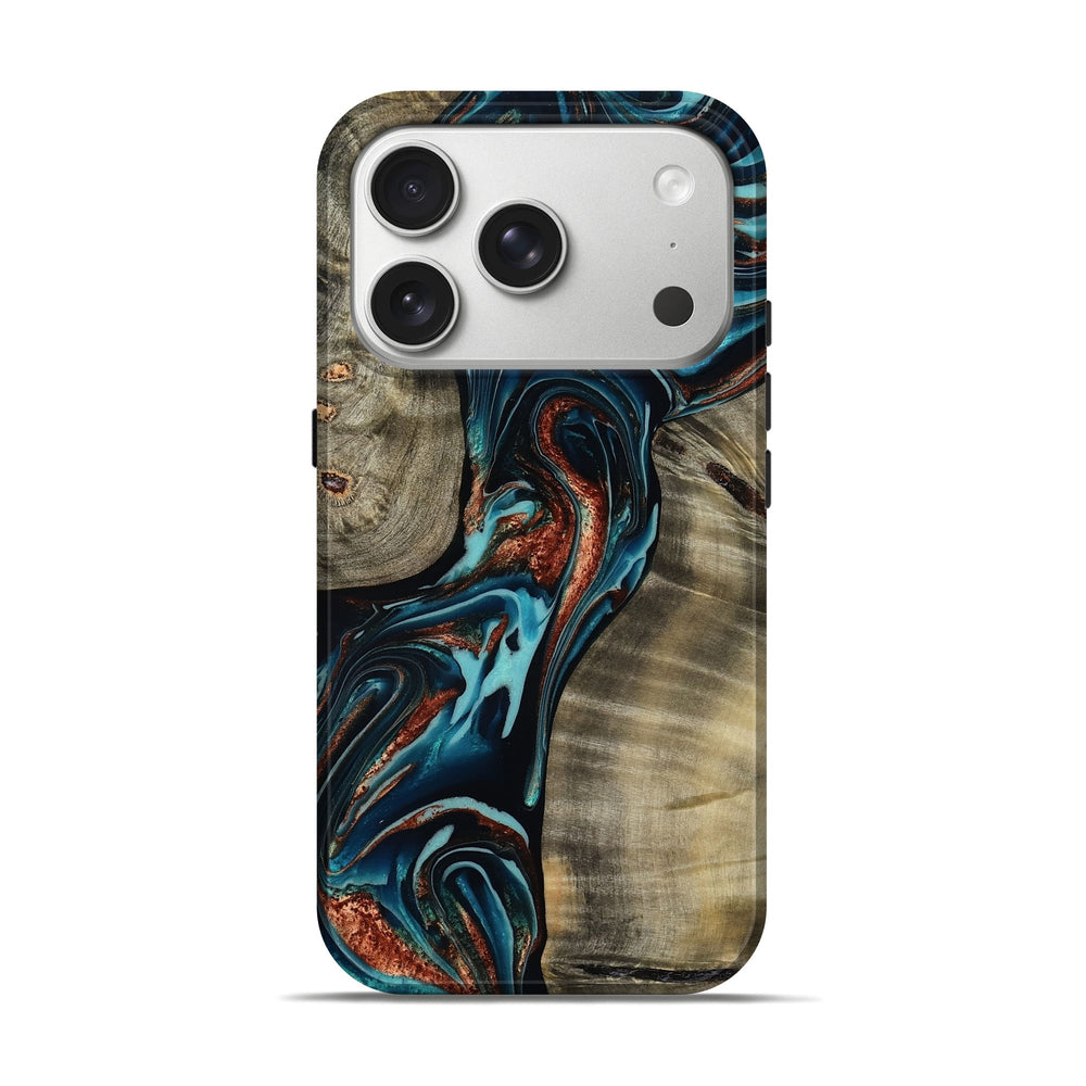 Our Live Edge cases are made from an amazing combination of stabilized wood burl and colored resin. Our stabilization process hardens the wood to protect against cracks and breaks. We do every step of the process at our shop in Northern Indiana. Perfectly fits the iPhone 17 Pro.