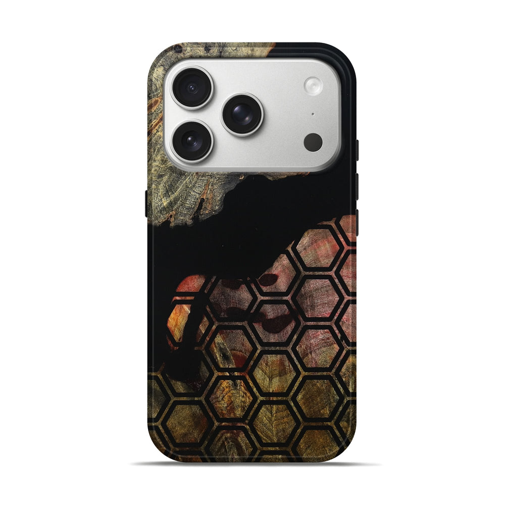 Our Live Edge cases are made from an amazing combination of stabilized wood burl and colored resin. Our stabilization process hardens the wood to protect against cracks and breaks. We do every step of the process at our shop in Northern Indiana. Perfectly fits the iPhone 17 Pro.