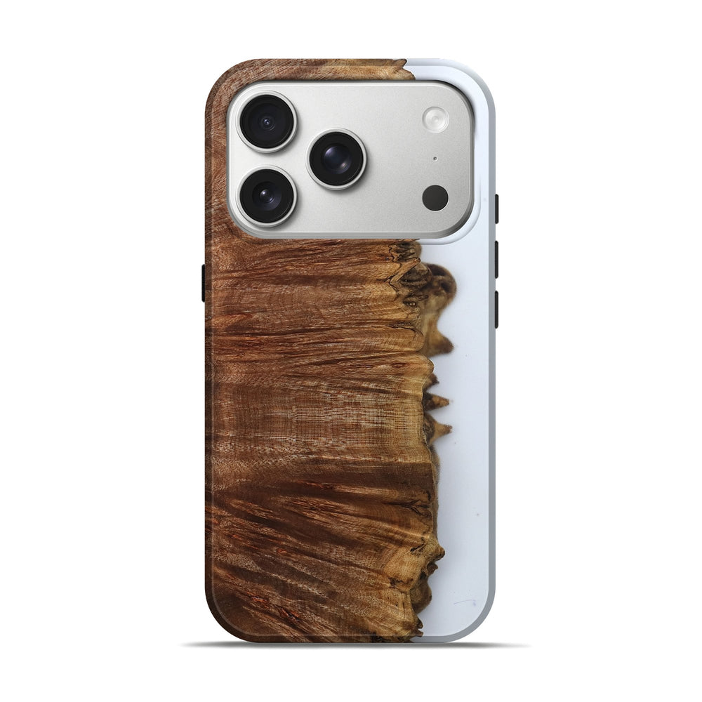Our Live Edge cases are made from an amazing combination of stabilized wood burl and colored resin. Our stabilization process hardens the wood to protect against cracks and breaks. We do every step of the process at our shop in Northern Indiana. Perfectly fits the iPhone 17 Pro.