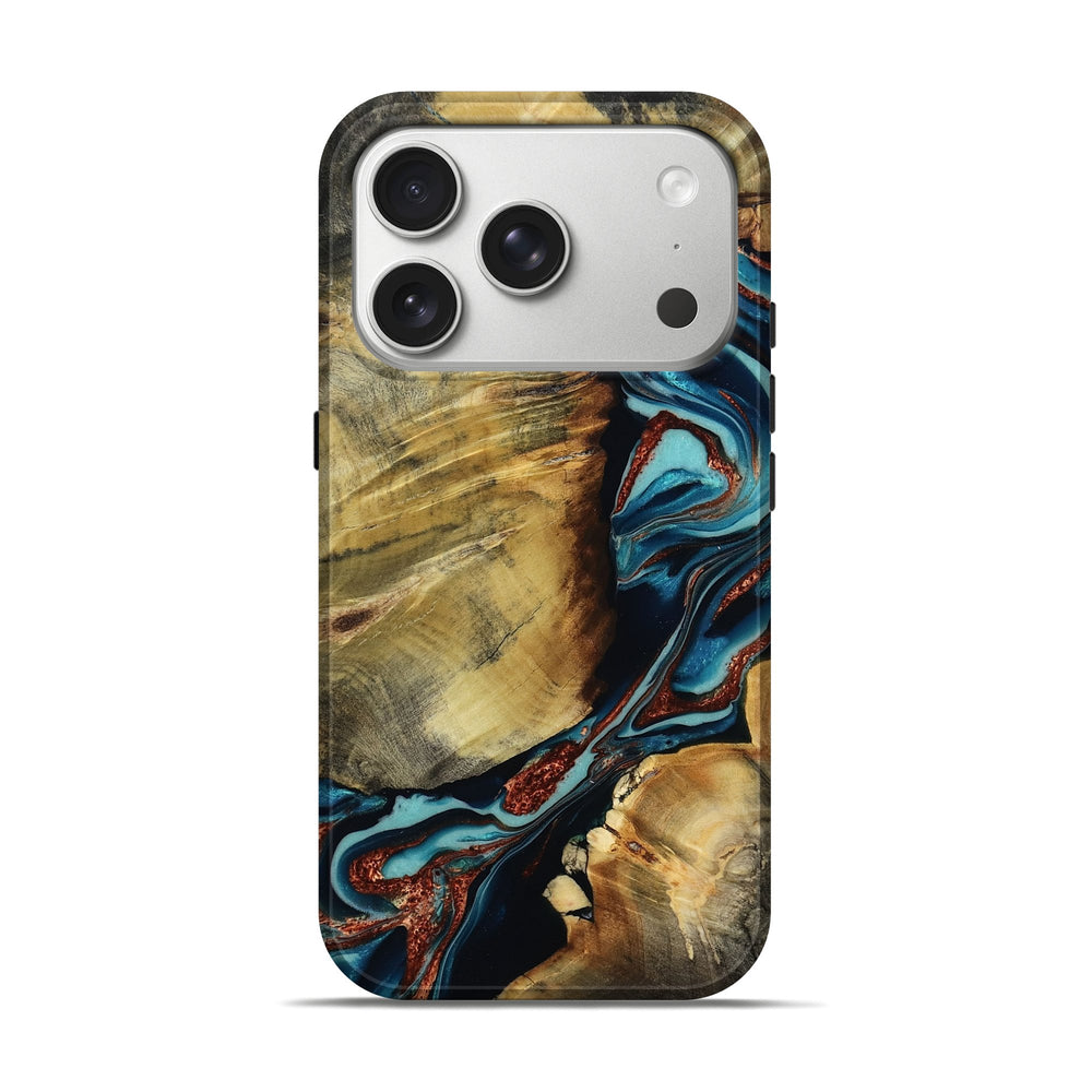 Our Live Edge cases are made from an amazing combination of stabilized wood burl and colored resin. Our stabilization process hardens the wood to protect against cracks and breaks. We do every step of the process at our shop in Northern Indiana. Perfectly fits the iPhone 17 Pro.