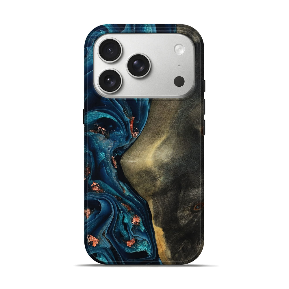 Our Live Edge cases are made from an amazing combination of stabilized wood burl and colored resin. Our stabilization process hardens the wood to protect against cracks and breaks. We do every step of the process at our shop in Northern Indiana. Perfectly fits the iPhone 17 Pro.