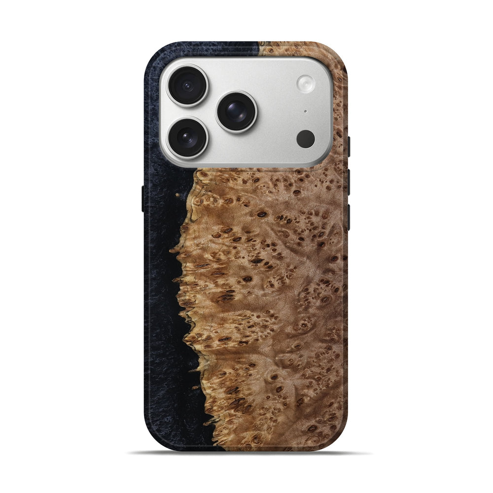 Our Live Edge cases are made from an amazing combination of stabilized wood burl and colored resin. Our stabilization process hardens the wood to protect against cracks and breaks. We do every step of the process at our shop in Northern Indiana. Perfectly fits the iPhone 17 Pro.