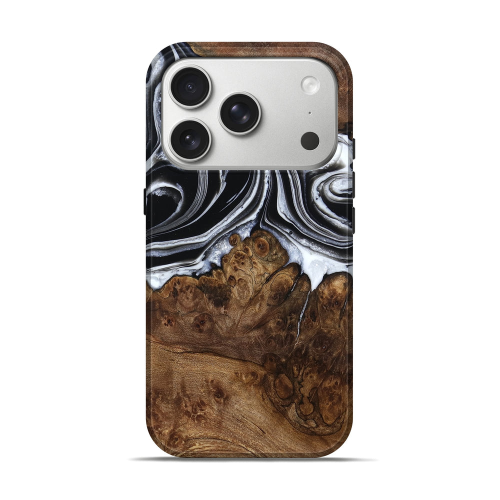 Our Live Edge cases are made from an amazing combination of stabilized wood burl and colored resin. Our stabilization process hardens the wood to protect against cracks and breaks. We do every step of the process at our shop in Northern Indiana. Perfectly fits the iPhone 17 Pro.