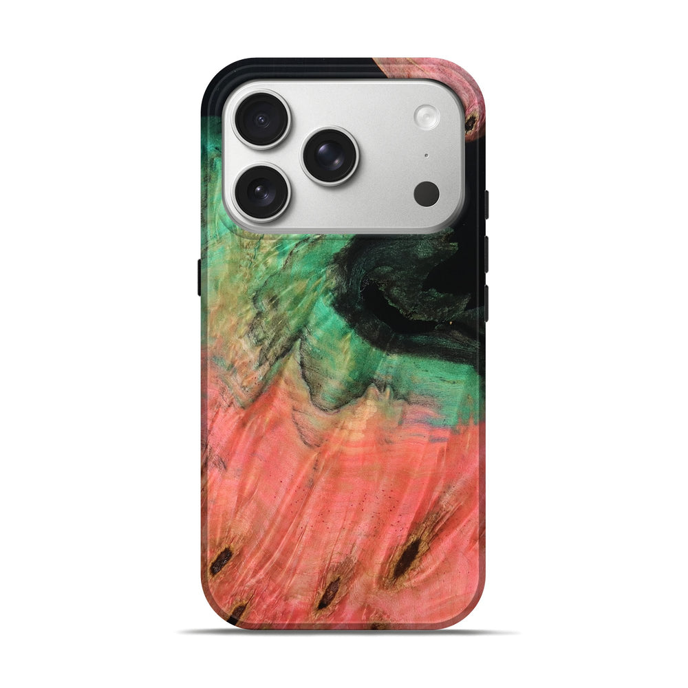 Our Live Edge cases are made from an amazing combination of stabilized wood burl and colored resin. Our stabilization process hardens the wood to protect against cracks and breaks. We do every step of the process at our shop in Northern Indiana. Perfectly fits the iPhone 17 Pro.